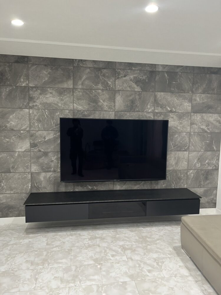 今回の戸建てリフォーム事例では、リビング全体の壁を清潔感のあるホワイトで仕上げ、その一面にLIXIL エコカラットプラス「サンティエ(ECP-630/STE3A)」のグレーをアクセントとして施工しました。高級感のあるグレーが映えることで、明るいリビングの中に落ち着きと上質感をプラス。おしゃれリフォームとして人気のナチュラルインテリアや北欧風デザインとも相性が良く、快適な暮らしを叶えます。調湿・脱臭効果のあるエコカラットは、子育て世代リフォームやマンションリフォームにもおすすめで、家事ラク動線や収納リフォームと組み合わせた内装リフォームにも最適。バリアフリーリフォームや断熱リフォームと同様、女性に嬉しい清潔感と機能性を兼ね備えた仕上がりです。